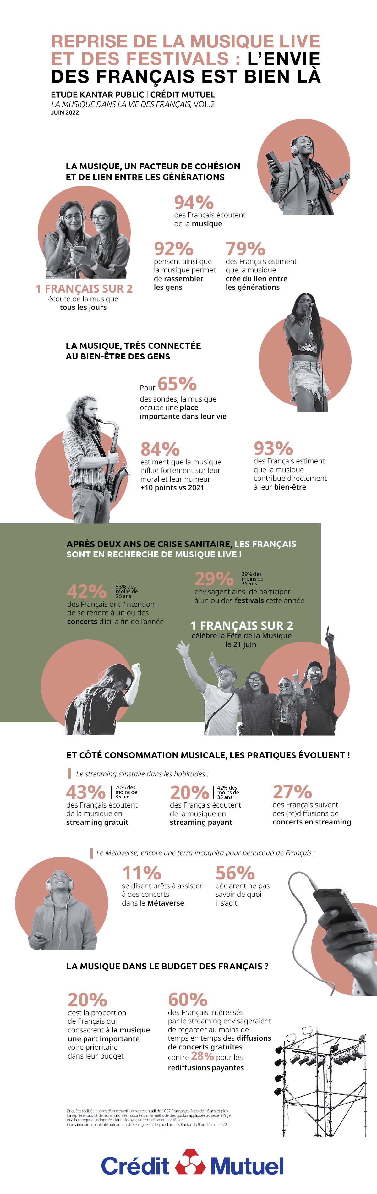 Comme le révèle la seconde édition de l’étude Kantar Public/ Crédit Mutuel sur « La musique dans la vie de Française », il se dégage au cœur des déclarations des interviewés une véritable envie de se retrouver collectivement et de partager de bons moments grâce à la musique ! Concerts en plein air ou dans des salles mythiques, découverte de nouveaux talents ou retrouvailles autour de noms prestigieux de la scène musicale française (voire internationale) c’est le programme que vous propose le Crédit Mutuel à travers les nombreux événements qu’il parraine à l’occasion de la Fête de la Musique 2022 !