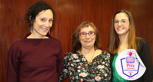 Légende : De gauche à droite : Elise Nouvellon (« Tribu en filigrane », Prix coup de coeur), Catherine Métais et Floriane Louail (« Livre Passerelle », Grand Prix) © Crédit Mutuel